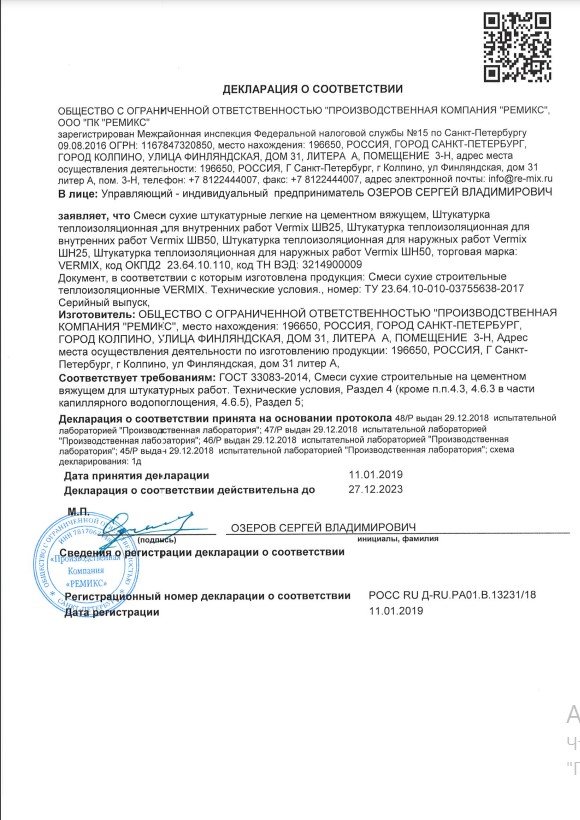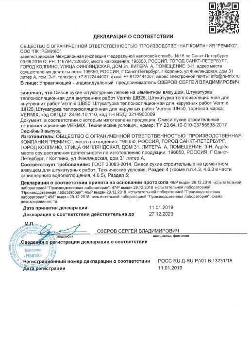 Vermix ШВ50 Штукатурка теплоизоляционная представляет собой высококачественный материал, предназначенный для внутренних отделочных работ. Ее удобно использовать для выравнивания поверхностей перед покраской или облицовкой. Штукатурка имеет великолепную теплоизоляционную способность, что позволяет существенно улучшить теплосбережение в помещении.